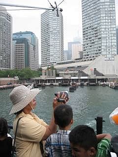 Op de veerboot kun je aan de reling staan of gewoon op een bankje gaan zitten. Vanaf de veerboot heb je een mooi uitzicht op de skyline van Toronto.