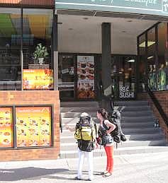 Rond Yong-Dundas Square zijn veel fastfood restaurants waar je snel en goedkoop iets kunt eten.