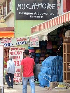 Karol Bagh is een winkelgebied dat gespecialiseerd is in kleding, sieraden en schoenen. De drukte, de vele geparkeerde auto's en de stalletjes doen in eerste instantie wat verwarrend aan maar dit is echt een winkelbuurt waar Indiase families graag naartoe gaan.