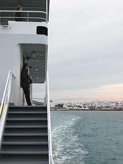 Reizen op het dek is niet ongewoon op de Griekse veerboten. Veel mensen willen overdag in de zon te luieren en dankzij de aangename temperaturen in de avond is het in de zomer dan ook op het dek aangenaam.