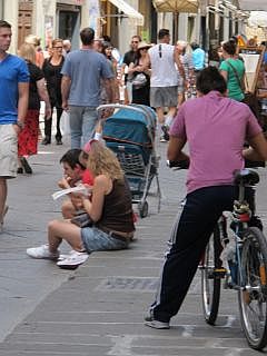 Op straat eten is in dit deel van Florence tijdens piekuren niet toegestaan dus je zult je lekkere pizzapunt elders moeten opeten.
