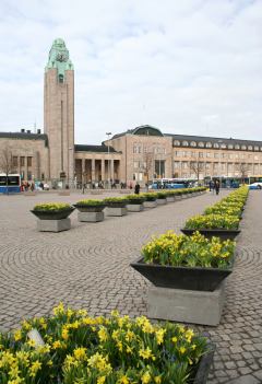 Het centraal treinstation van Helsinki ligt op loopafstand van het busstation.