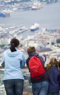 Bergen is het begin- en eindpunt van de Hurtigruten route. Deze veerbootroute met de postboot gaat langs de kust naar het noorden. Op weg naar Kirkenes legt de veerboot in 34 dorpen en steden aan waaronder de havenstad Trondheim en de stad Tromsø in het hoge noorden.