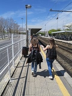 Het treinstation Cais do Sodré ligt boven het metrostation. Iedere twintig minuten vertrekt er vanaf dit station een trein langs de badplaatsen aan de Taag. Met hetzelfde kaartje als voor de metro kun je inchecken in de trein.